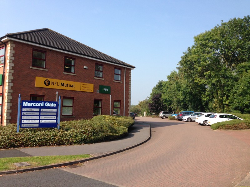 Marconi Gate is a development of two-storey office buildings of brick and tile construction arranged in two terraces with forecourt parking and provides a total of nine units with tenants including the NHS, Omicron and NFU Mutual Insurance.